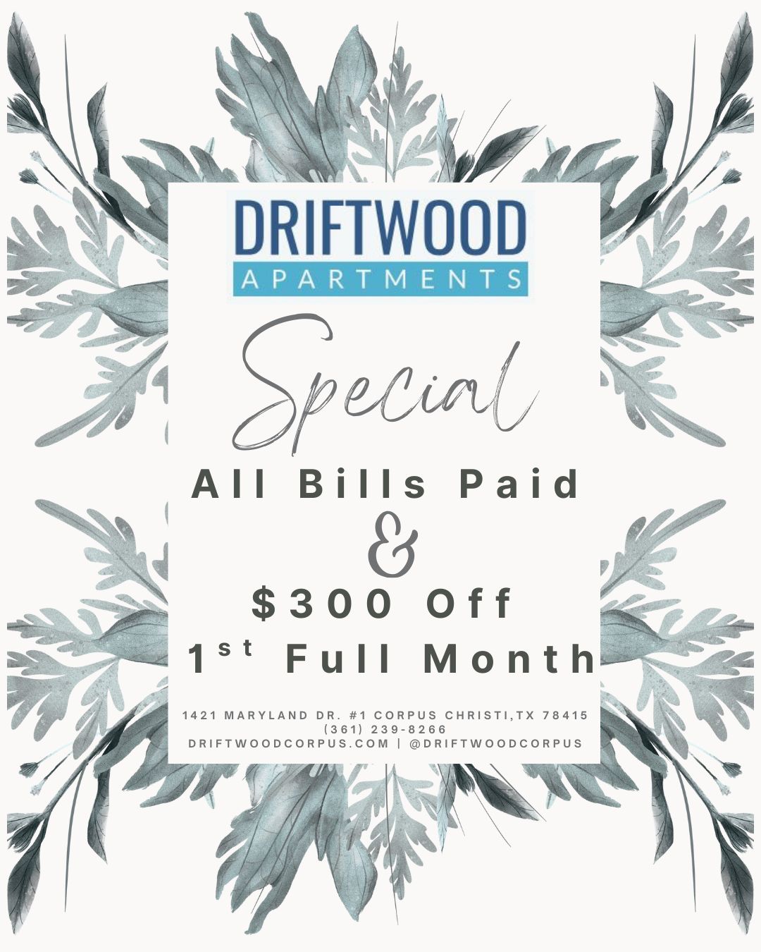 Driftwood Apartments in Corpus Christi, Texas, offer residents a unique blend of coastal living and urban convenience. Nestled along the Gulf of Mexico, this apartment community provides easy access to stunning beaches, vibrant parks, and a plethora of waterfront activities. Whether you are interested in prime shopping, dining, or outdoor recreation, our location ensures you are always within reach. The refreshing sea breeze and the tranquil ambiance of the area make Driftwood Apartments an ideal retreat for those seeking a relaxed lifestyle with a touch of coastal charm.